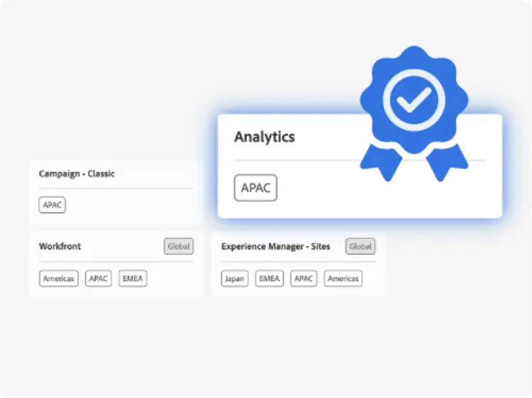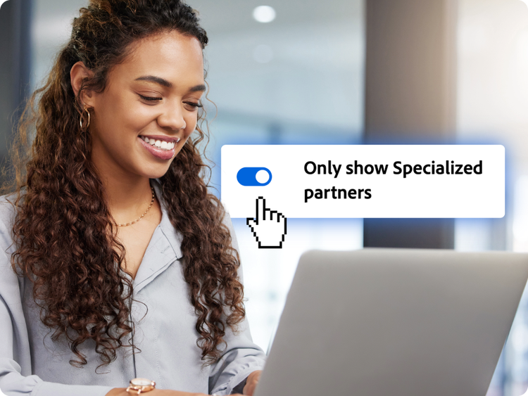 Adobe offers an array of partner-centric marketing resources and benefits to help you stand out and get discovered. Earned badges, product specializations, and a polished Partner Directory profile signal proven expertise and customer success and show the market that you're committed to excellence, aligned with Adobe, and ready to deliver outcomes that matter.