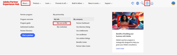 Adobe recognizes two primary roles for partner contacts: Admin and User. This structure ensures that admins have visibility of organizational-level operations while users focus on individual-level tasks within the partner ecosystem.