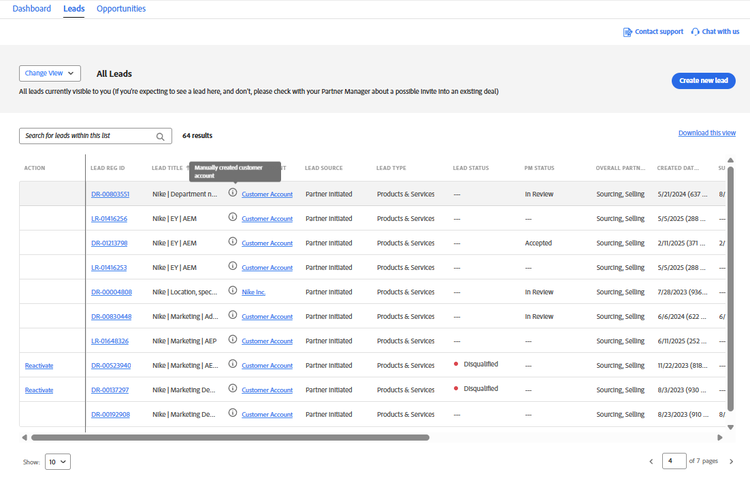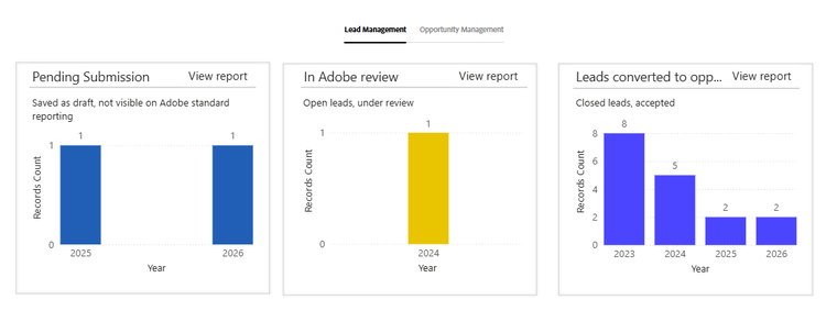 As a general rule, if you can’t see the lead or opportunity being worked on together with Adobe, then a step in the process has likely been missed. In these cases, be sure to reach out to your assigned partner contact to correct the issue.