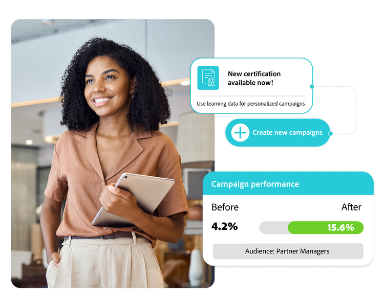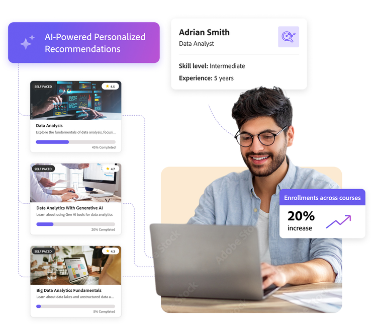 Engaged learners drive real business impact. With Adobe Learning Manager, your clients can deliver personalized, on-brand, and gamified learning experiences—right within their websites. Whether boosting customer knowledge or upskilling employees, this award-winning learning management platform makes learning engaging, measurable, and aligned to business goals.